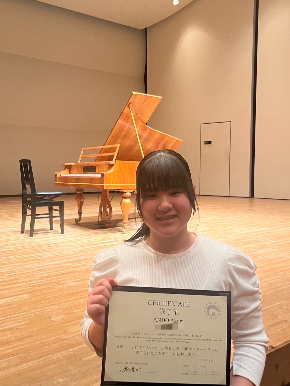 16 2月 冬のピアノコンクール 18 Posted at 10:24h in 教室トピックス, 教室のつぶやき by 河野里香 小倉貴久子先生による公開マスタークラスのレッスンがありました。 ピアノフォルテによる演奏です。 「いつも練習している楽器と違って鍵盤の幅が狭かったり、音色を作ることに戸惑いました」本人談 良い経験になったかと思います。
